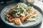 En guise d'entrée, nous avons pris un Cauliflower Bang Bang, des petits morceaux de chou-fleur panés et frits, servi avec une sauce thaï épicée. C'est bien à partager, gourmand, le chou-fleur est bien cuit et la sauce, à base de mayonnaise, bien relevée. La panure est assez croustillante, et pas trop grasse - ça se mange bien, mais à la longue c'est trop sucré.
